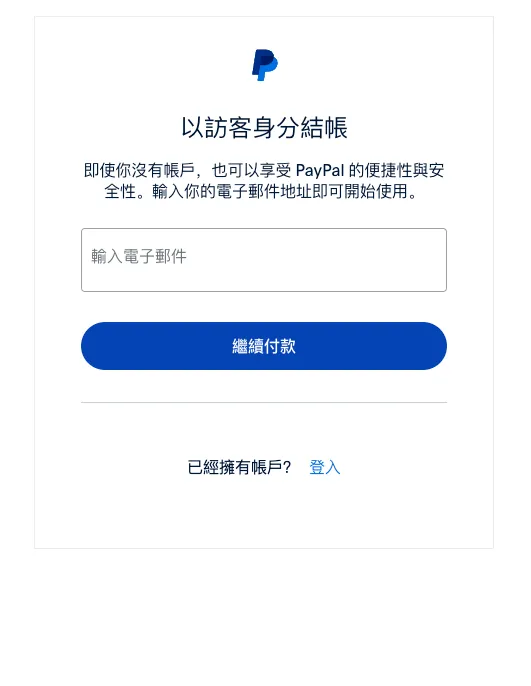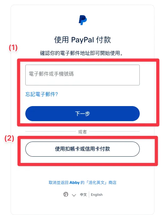 2. 若以經持有 PayPal 帳號,可直接登入付款,請看 (1)。